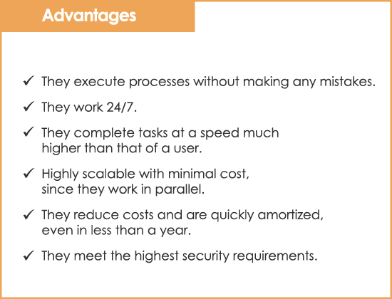 Tasks that can be automated are those that are repetitive and follow a process that can be defined with certain rules. In the event that a certain transaction does not meet the established criteria, the software robot will pass the transaction to an operator to study the reasons.